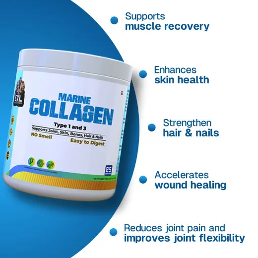 The5XL Marine Collagen is a high-quality dietary supplement made using hydrolyzed marine collagen peptides