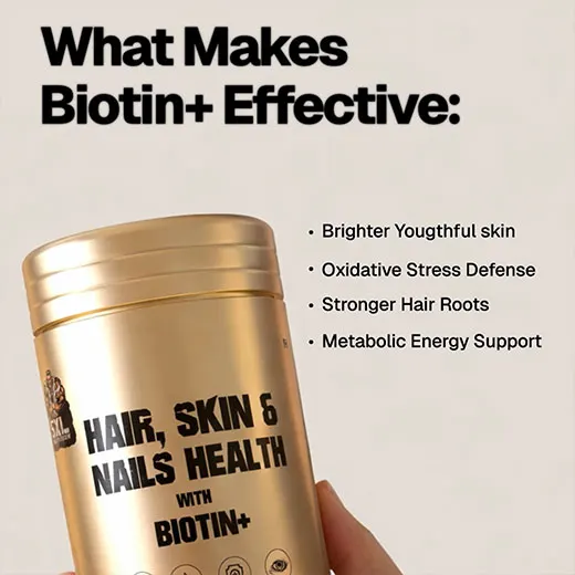 I bought Biotin+ mainly for skin and nail health. Within a month, my nails became noticeably stronger and stopped breaking easily. My skin looks more hydrated and fresh, especially in the morning.