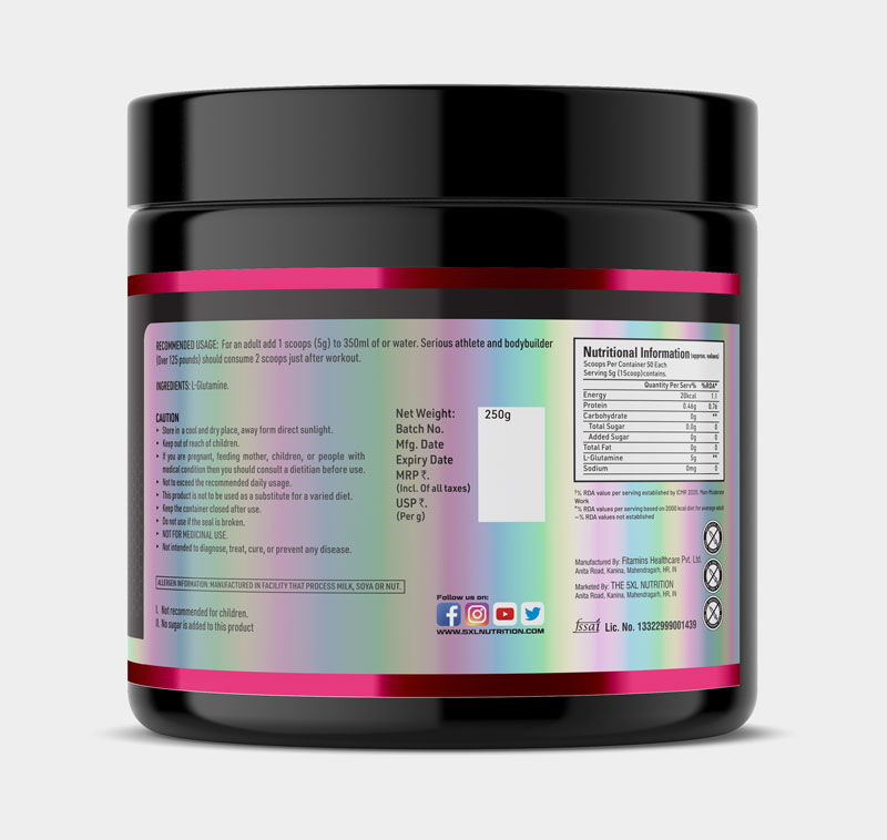 5XL Nutrition’s L-Glutamine Supplement is designed to help your muscles bounce back faster, support gut health, and keep your immune system strong — especially during intense workouts, dieting, or stress.
